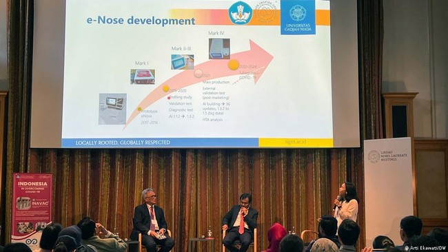 Salah satu yang menarik perhatian banyak ilmuwan dan negara lain adalah presentasi mengenai deteksi Covid-19 dengan menggunakan e-Nose. Alat yang berfungsi untuk meneliti susunan kimia dalam tiap hembusan napas ini tampak menyentil rasa ingin tahu para peserta pertemuan.