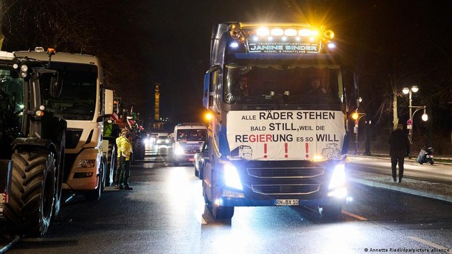 Yang juga merasa kecewa adalah para petani, yang subsidinya akan dipotong. Di seluruh Jerman, mereka memblokir jalan raya, datang dengan traktor dan tronton ke kota-kota untuk melakukan protes dan melumpuhkan lalu lintas.