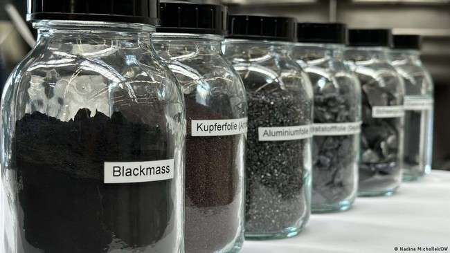 Stoples kaca berisi bubuk hitam itu berpendar di bawah sinar lampu pabrik. Labelnya bertuliskan "massa hitam", yang sejatinya adalah logam berharga seperti litium, nikel dan kobalt yang didapat dari parutan limbah baterai mobil. Bubuk hitam itu bisa menjadi kunci bagi industri otomotif Uni Eropa demi mengejar ketertinggalan dari Cina dalam manufaktur dan daur ulang baterai kendaraan listrik.