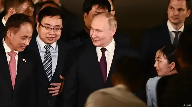 Sehari setelah menandatangani perjanjian pertahanan dengan Korea Utara, Putin menerima penghormatan militer di Vietnam, dan Putin terlihat dipeluk oleh Presiden Vietnam To Lam dan Perdana Menteri (PM) Vietnam Pham Minh Chinh.