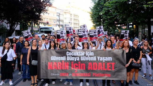 "Cantik," "sensitif," "rapuh," setidaknya begitulah arti kata nama Narin ketika diterjemahkan dalam bahasa Indonesia. Kasusnya menjadi berita utama di media Turki selama berminggu-minggu. Anak berusia delapan tahun dari desa Tavsantepe, dekat Diyarbakir di bagian tenggara Turki itu, dilaporkan hilang beberapa minggu lalu. Kemudian, mayatnya ditemukan dalam sebuah karung pada tanggal 8 September di bantaran sungai.