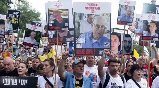 Sehari sebelumnya, puluhan ribu warga Israel kembali turun ke jalan untuk mendesak pemerintah menyetujui kesepakatan untuk memulangkan 50 sandera yang tersisa. Para pengunjuk rasa saat mereka berbaris menuju Lapangan Sandera di pusat kota Tel Aviv.