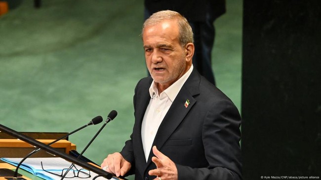 "Deklarasi saya kepada majelis ini jelas: Iran tidak pernah dan tidak akan pernah membangun bom nuklir," tegas Pezeshkian. "Yang mengganggu perdamaian dan stabilitas di kawasan adalah Israel, namun Iran yang dihukum."
