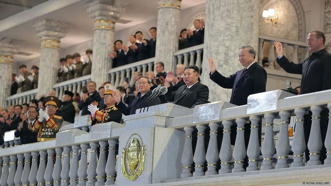 Para pemimpin negara-negara Asia Tenggara, Vietnam dan Laos, termasuk di antara tamu asing yang menghadiri parade besar di Pyongyang, yang menampilkan puluhan ribu tentara dengan sistem senjata Korea Utara yang luas.
