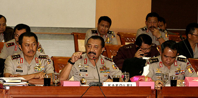 - Komisi III DPR dan Kapolri menggelar rapat kerja dengan Kapolri Jenderal Timur Pradopo di gedung DPR, Jakarta, Rabu (1/2/2012). Rapat kerja ini membahas kerusuhan di berbagai daerah di Indonesia, salah satunya Bima. Selain itu Rapat kerja ini juga membahas kasus surat palsu MK.