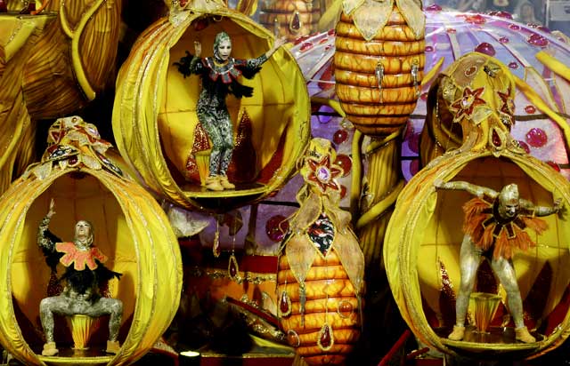 Para penari dari sekolah Samba saat unjuk kebolehan di Karnaval Samba Sao Paulo. Festival ini menginspirasi festival sejenis yang kolosal dan baju warna-warni. (Foto: REUTERS/Paulo Whitaker).