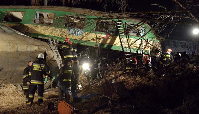 - 2 Kereta api bertabrakan di Szczechociny, Polandia, Minggu (4/3). 14 Orang tewas dan puluhan lainnya terluka.