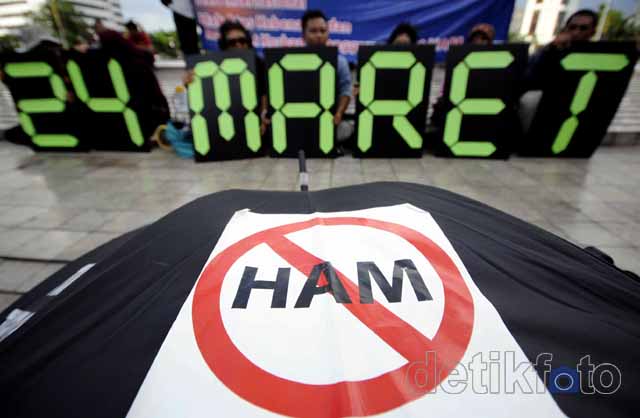 Penegakan HAM Harus Segera Dituntaskan BAGIKAN URL telah disalin KontraS mengingatkan pemerintah untuk segera mengusut tuntas berbagai kasus HAM yang terjadi di negara Indonesia. Baik mulai dari pelanggaran HAM yang ringan sampai yang berat. Para demonstran membentangkan spanduk hitam yang bertuliskan HAM dengan lambang dicoret di bawah mereka