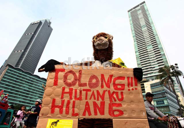 Yuk, Selamatkan Hutan dan Harimau! BAGIKAN URL telah disalin Aktivis Greenpeace menyuarakan pentingnya menyelamatkan hutan Indonesia. Dalam aksinya, aktivis Greenpeace yang mengenakan kostum harimau berjalan mengitari Bundaran HI, Jakarta. Mereka juga membagikan stiker kepada warga yang melintas di kawasan Bundaran HI, Jakarta. Mereka mengajak masyarakat agar ikut menyelamatkan hutan dan harimau. Seorang aktivis Greenpeace membagikan stiker ajakan untuk menyelamatkan hutan dan harimau kepada seorang warga. Mereka membagikan stiker ajakan untuk menyelamatkan hutan dan harimau kepada warga yang mengisi hari libur di kawasan Bundaran HI, Jakarta.