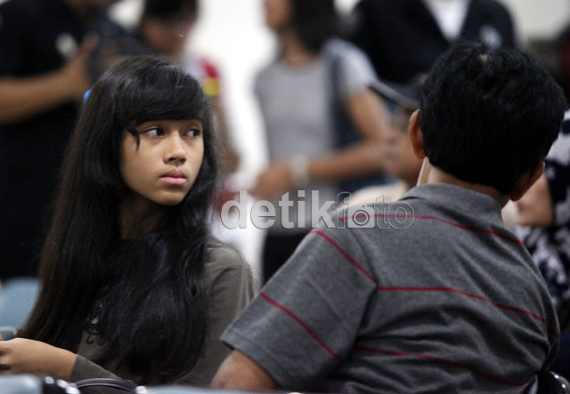 Jakarta - Duka terpancar dari wajah anak korban sukhoi saat menunggu kepastian nasib orang tuanya yang menjadi penumpang pesawat Sukhoi, Jakarta, Jumat (11/5). Selain menangis, beberapa di antaranya mencoba menghibur diri dengan bermain saat menunggu di bandara Bandara Halim Perdanakusumah.
