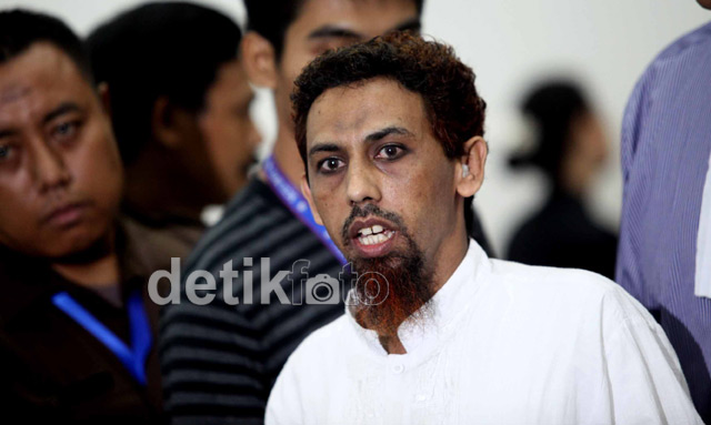 Jakarta - Terdakwa kasus bom Bali I, Umar Patek menjalani sidang tuntutan di Pengadilan Negeri Jakarta Barat, Jakarta, Senin (21/5). Jaksa menuntut Umar Patek dipenjara seumur hidup. Seumur hidup artinya Patek harus menghirup udara penjara selama umur saat ia divonis.