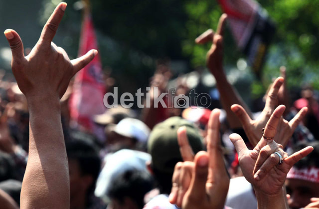 Yang Unik dari Pendukung Jokowi BAGIKAN URL telah disalin Ini dia salam ala pendukung Jokowi-Ahok, salam metal. Salam ini sesuai dengan nomor urut Jokowi-Ahok, nomor 3. Jokowi melakukan salam metal kepada para pendukungnya. Anak kecil yang jadi peserta kampanye juga ikut salam metal. Pasangan Jokowi-Ahok didukung oleh PDIP dan partai Gerindra.