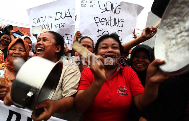 Bawa Panci, Pendukung Foke Berjoget BAGIKAN URL telah disalin Dengan membunyikan alat-alat masak, mereka menyatakan dukunganya untuk Foke. Mereka juga berjoget dan menari. Poster bergambar Foke-Nara juga mereka bentangkan. Aksi ini juga diikuti oleh anak-anak. Pilkada DKI Jakarta akan digelar Rabu 11 Juli 2012.