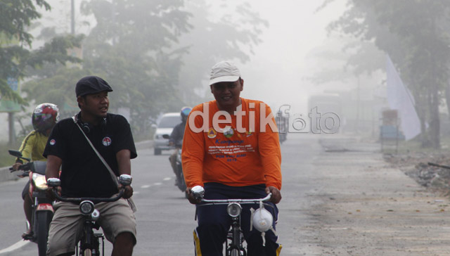 - Kabut asap yang cukup tebal menyelimuti Pekanbaru, Minggu (9/9). Kabut asap ini terjadikarena aktivitas pembakaran lahan di wilayah Sumatera, termasuk Riau.
