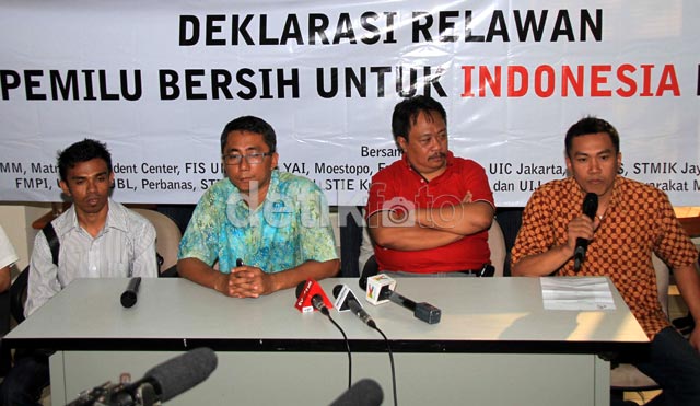 - Gabungan mahasiswa dari beberapa universitas di Jakarta mendeklarasikan Pemilu Bersih untuk Indonesia di Gedung Panwaslu, Jakarta, Jumat (14/9/2012). Mereka nantinya akan membantu Panwaslu melakukan pengawasan Pemilukada DKI Jakarta.
