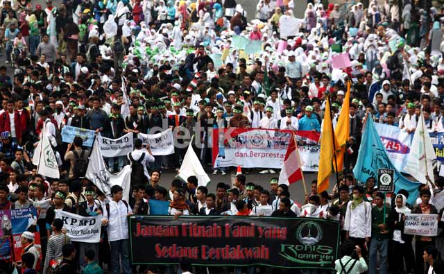 - Aktivis Rohis (Rohani Islam) menggelar aksi damai di Bundaran Hotel Indonesia (HI), Jakarta. Minggu (23/9/2012). Dalam aksinya mereka menegaskan bahwa Rohis bukanlah teroris.