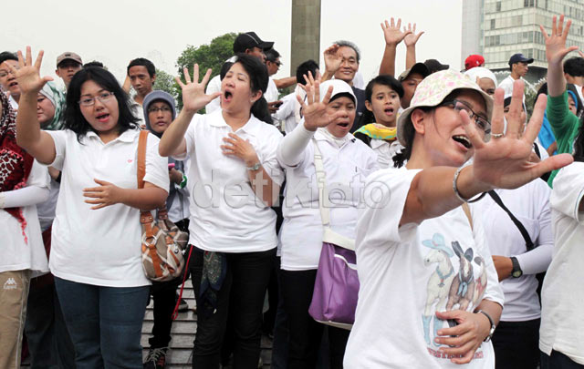 Aksi Tuna Rungu di Bundaran HI BAGIKAN URL telah disalin Para penyandang tuna rungu beraksi dengan bernyanyi di Bundaran HI, Jakarta. Para penyandang tuna rungu meneriakkan yel-yel tuntutan. Aksi ini berlangsung damai. Dalam aksinya, mereka mendesak akses luas terhadap penderita tuna rungu di wilayah publik.
