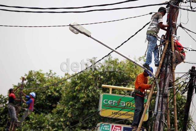 Perawatan dan Pemeriksaan Jaringan Listrik BAGIKAN URL telah disalin Sejumlah petugas melakukan perawatan dan pemeriksaan jaringan listrik di kawasan Bukit Duri, Jakarta Selatan. Apabila ditemukan kabel yang rusak atau terkelupas, petugas akan segera melakukan penggantian. Tiga orang petugas memanjat tiang listrik untuk mengecek jaringan. Perawatan dan pemeriksaan komponen tersebut juga untuk menghindari terjadinya korsleting.