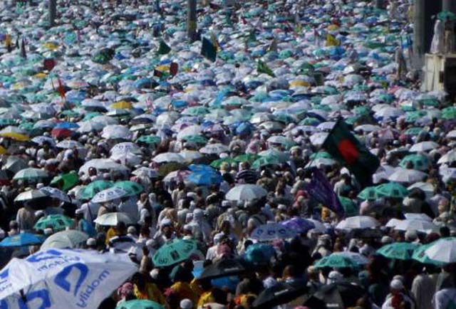 Sementara rombongan dari Thailand ini mengenakan jilbab warna biru yang mudah dikenali di tengah kerumunan orang-orang berpakaian warna putih.