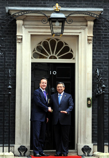 Jakarta - Presiden Susilo Bambang Yudhoyono melakukan pertemuan bilateral dengan Perdana Menteri Inggris David Cameron di Jalan Downing 10, London, Inggris, Kamis (1/11/2012). Di akhir pertemuan, ditandatangani tiga nota kesepahaman atau memorandum of understanding (MoU) dan satu kesepakatan bersama.