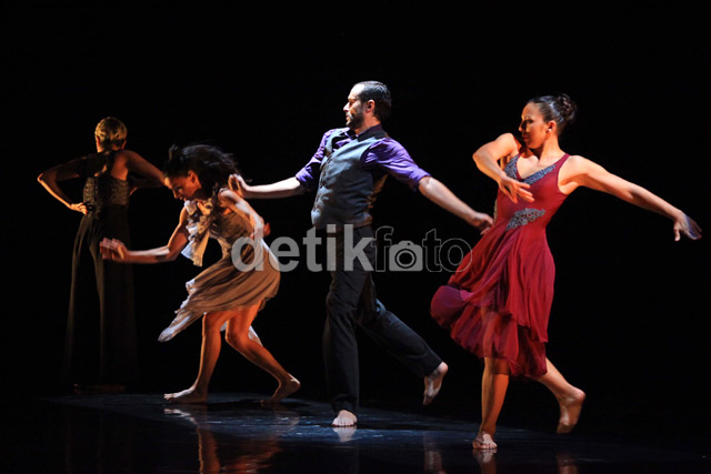 Jakarta - Para penari asal Spanyol menggelar tarian kontemporer karya tari Teresa Nieto & Co yang berjudul "Al Mal Tiempo Buena Cara" di Gedung Kesenian Jakarta, Rabu (07/11) malam. Pagelaran yang diprakarsai oleh Kedubes Spanyol di Jakarta ini mampu menyihir penonton dalam setiap gerakan tariannya, meski durasi pertunjukan hingga 2 jam.