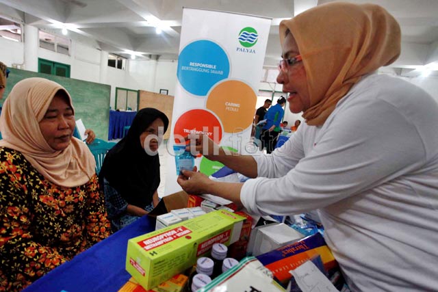 Jakarta - PT PAM Lyonnaise Jaya (Palyja) menggelar pengobatan gratis di Karet Tengsin, Jakarta Pusat, Selasa (13/11). Kegiatan ini diikuti oleh 200 warga di lingkungan RW 07 yang merupakan korban kebakaran Agustus 2012 silam.