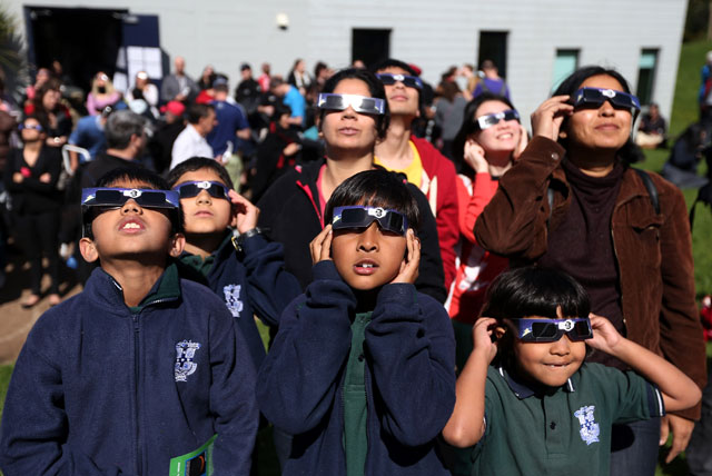- Warga Selandia Baru dan Australia ramai-ramai melihat gerhana matahari total, Rabu (14/11/2012). Mereka melihat fenomena alam tersebut menggunakan teropong dan alat bantu lainnya.