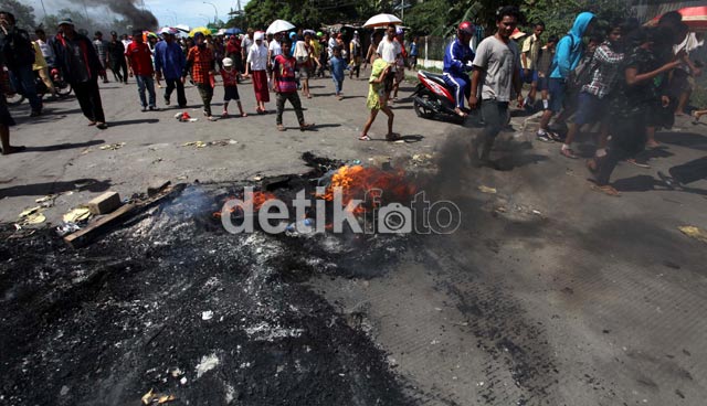 Jakarta - Ratusan warga Kampung Sawah Cilincing Jakarta Utara memblokir jalan Raya Cacing (Cakung-Cilincing), Rabu (28/11). Mereka menolak penggusuran pemukiman mereka.