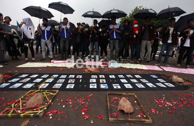 Jakarta - Puluhan orang sahabat munir yang bergabung dengan Jaringan Solidaritas Korban untuk Keadilan melakukan aksi Kamisan di depan Istana Merdeka, Jakarta Pusat, Kamis (6/12). Aksi ke-284 itu memperingati kelahiran Munir yang jatuh pada 8 Desember sekaligus menyerukan penolakan terhadap RUU Kamnas.