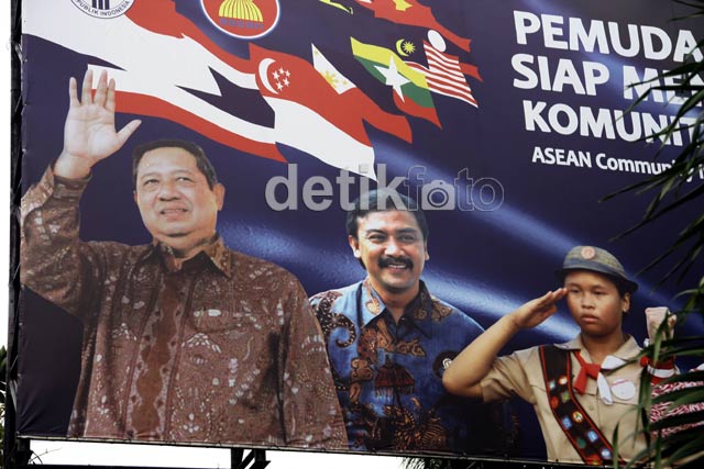- Walaupun Andi Mallarangeng sudah mengundurkan diri dari Menegpora tetapi posternya masih terpampang di sekitar Gedung Kemenpora, Jalan Gerbang Pemuda, Senayan, Jakarta Pusat, Selasa (11/12). Andi Mallarangeng mengundurkan diri dari Kemenpora karena menjadi tersangka dalam kasus Hambalang.