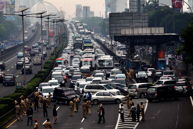 ย ย ย ย Para pendemo menutup ruas jalan tol dari Semanggi ke Grogol.
