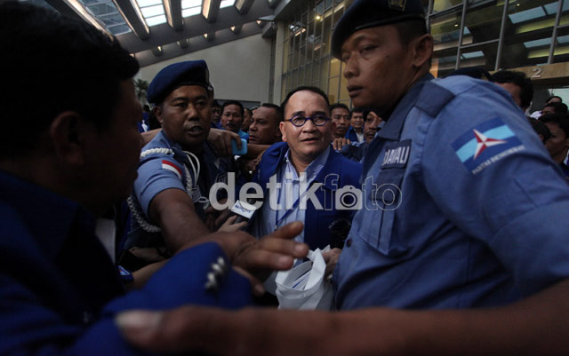 Jakarta - Meski telah dipecat dari kepengurusan DPP Partai Demokrat, Ruhut Sitompul tetap mendatangi pembukaan Silatnas Partai Demokrat, Sentul Bogor, Jawa Barat, Jumat (14/12). Namun kedatangannya tidak diterima, ia diusir dan hampir dikeroyok oleh beberapa anggota Partai Demokrat.