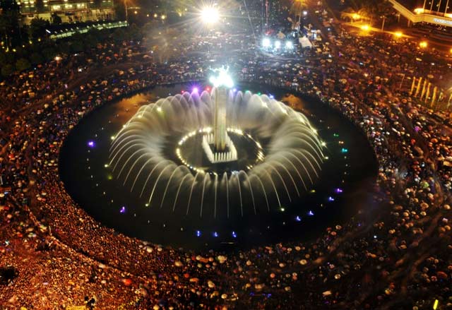 Ribuan warga menyemut di bundaran Hotel Indonesia (HI), Jakarta. AFP/Bay Ismoyo.