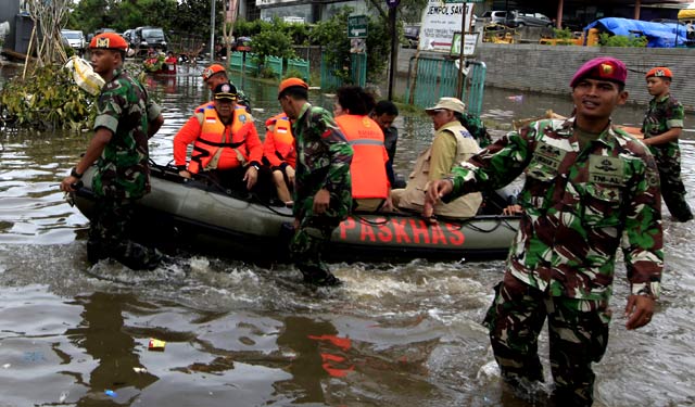 - Menkokesra Agung Laksono meninjau lokasi dan korban banjir di Muara Baru dan Pluit, Jakarta Utara, Senin (21/1/2013). Menkokesra menilai penanganan banjir berjalan dengan baik, logistik cukup memadai tinggal distribusinya yang perlu dipercepat.