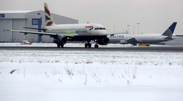 Hampir 200 penerbangan di Bandara Heathrow dibatalkan akibat salju tersebut. Reuters/Neil Hall.