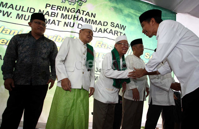 - Gubernur DKI Jakarta Joko Widodo menghadiri peringatan maulid Nabi Muhammad yang digelar Muslimat NU DKI Jakarta. Acara tersebut berlangsung di kantor Muslimat NU di Jalan Talang, Proklamasi, Jakarta Pusat, Sabtu, (9/2/2013).