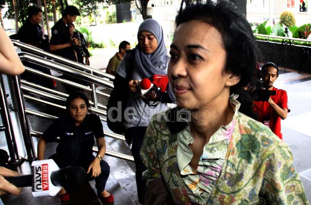 Elda Devianne Kembali Diperiksa KPK BAGIKAN URL telah disalin Elda tiba di gedung KPK sekitar pukul 10.40 WIB dengan mengenakan batik krem. Ramses/detikFoto. Elda masuk ke loby KPK didampingi koleganya. Ramses/detikFoto. Elda memberi pernyataan kepada wartawan. Ramses/detikFoto.