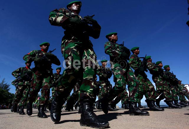 Pasukan TNI turut memeriahkan peringatan 50 tahun kembalinya Papua ke Indonesia.