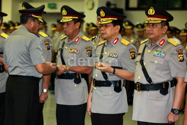 - Mabes Polri melakukan pergantian terhadap 14 pejabat Polri. 14 Pejabat tersebut terdiri 11 Kaploda, 1 Kadiv Humas Polri dan Kadiv TI Polri dan Kepala Korps Brimob.
