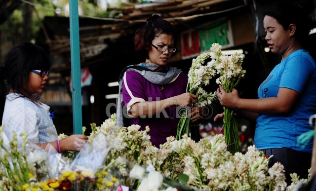 - H-1 Lebaran, ternyata tak hanya ketupat yang diserbu oleh kaum ibu. Bunga-bunga segar seperti jenis bunga sedap malam juga laris manis di pasaran.