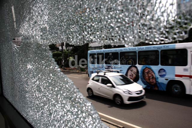 - Halte TransJakarta Cawang Cikoko dan Cawang-Ciliwung menjadi sasaran tembak orang tidak bertanggung jawab, Jumat (9/8//2013). Kaca halte pecah berserakan.