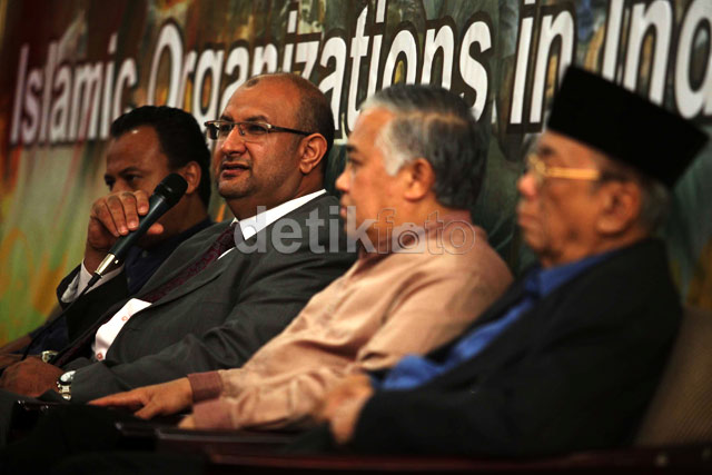 - Ketua Bidang Hubungan Luar Negeri Ormas Ikhwanul Muslimin Ahmed Muhammad Fahmi Elwatidi menghadiri diskusi 'We Are With You, Brethern' di kantor PP Muhammadiyah, Jakarta, Rabu (4/9/2013). Diskusi ini membahas tentang perkembangan permasalahan dan fakta sebenar-benarnya yang terjadi di Mesir saat ini.
