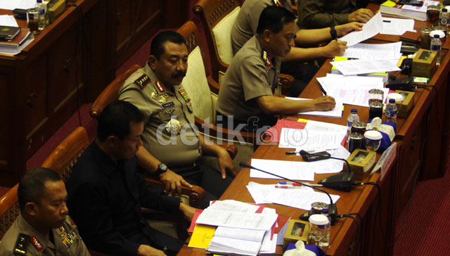 - Kapolri Jenderal Polisi Timur Pradopo bersama jajarannya melakukan rapat dengar pendapat dengan anggota komisi III di ruang rapat komisi III, Gedung DPR RI, Senayan, Jakarta. Kapolri menyatakan pihaknya sudah melaksanakan program deradikalisasi terorisme, hanya memang belum optimal.