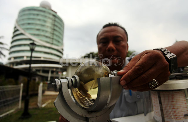 Β Β Β Β Petugas dengan menggunakan alat bernama campbell stokes mengecek lamanya penyinaran matahari.