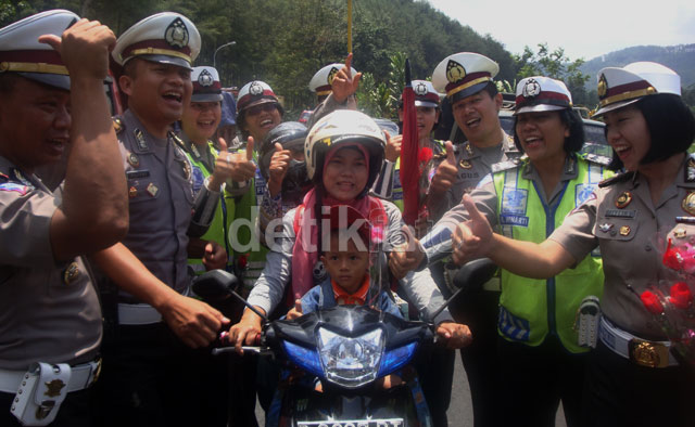- Puluhan pengendara motor terjaring razia yang dilakukan oleh Satlantas Polres Banyumas di sekitar Bendung Gerak Serayu, Rawalo, Banyumas, Jawa Tengah. Bukannya ditilang, mereka justruk diberikan helm secara cuma-cuma alias gratis.