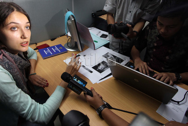 - Julia Razareva (23) model cantik asal Rusia menjalani pemeriksaan intensif di kantor Imigrasi Jakarta Selatan, Jumat (27/9/2013). Petugas imigrasi menangkap Julia karena melakukan pelanggaran izin tinggal.