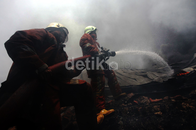 - Sebuah babrik plastik di Jelembar, Jakarta Barat, terbakar, Kamis (3/10/2013). Belum duketahui penyebab kebakaran tersebut.