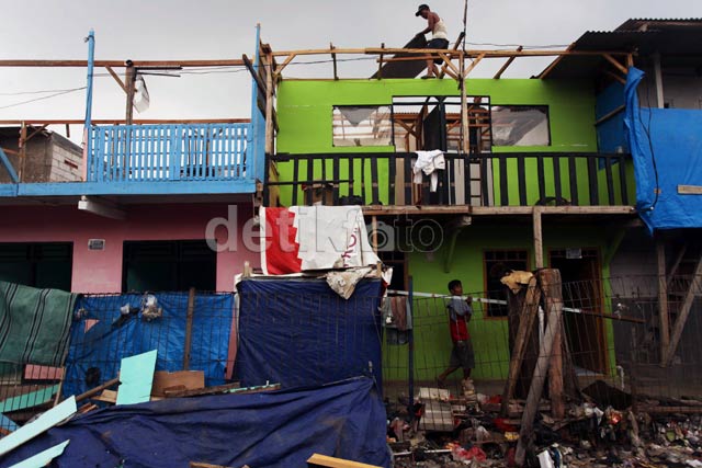 - Sebagian warga waduk Ria Rio sudah menempati Rusun Pinus Elok. Mereka pun dengan suka rela membongkar sendiri rumah mereka yang berada di pinggir Waduk Ria Rio, Pedongkelan, Kelurahan Kayu Putih, Kecamatan Pulogadung, Jakarta Timur, Senin (7/10/2013).