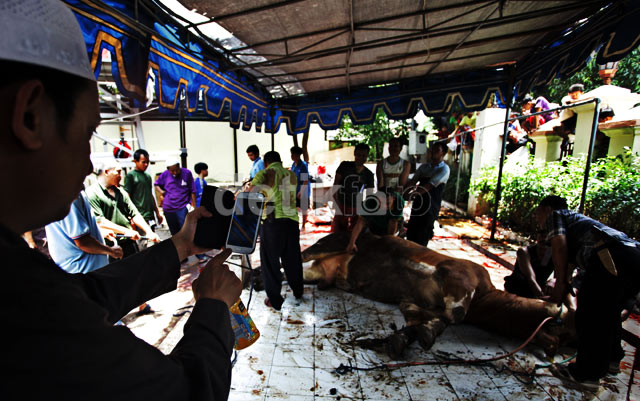 - Masjid Agung Sunda Kelapa, Menteng Jakarta Pusat, melakukan pemotongan hewan kurban, Selasa (15/10/2013). Kali ini hewan kurban yang dipotong sebanyak 118 ekor.