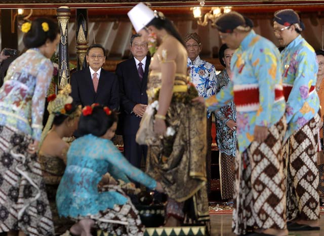 - Presiden SBY dan Ibu Ani menghadiri prosesi pernikahan Putri Sultan HB X Yogyakarta di Kompleks Keraton Ngayogyakarta Hadiningrat, Yogyakarta, Rabu (22/10). Pernikahan keraton tersebut berlangsung lancar.